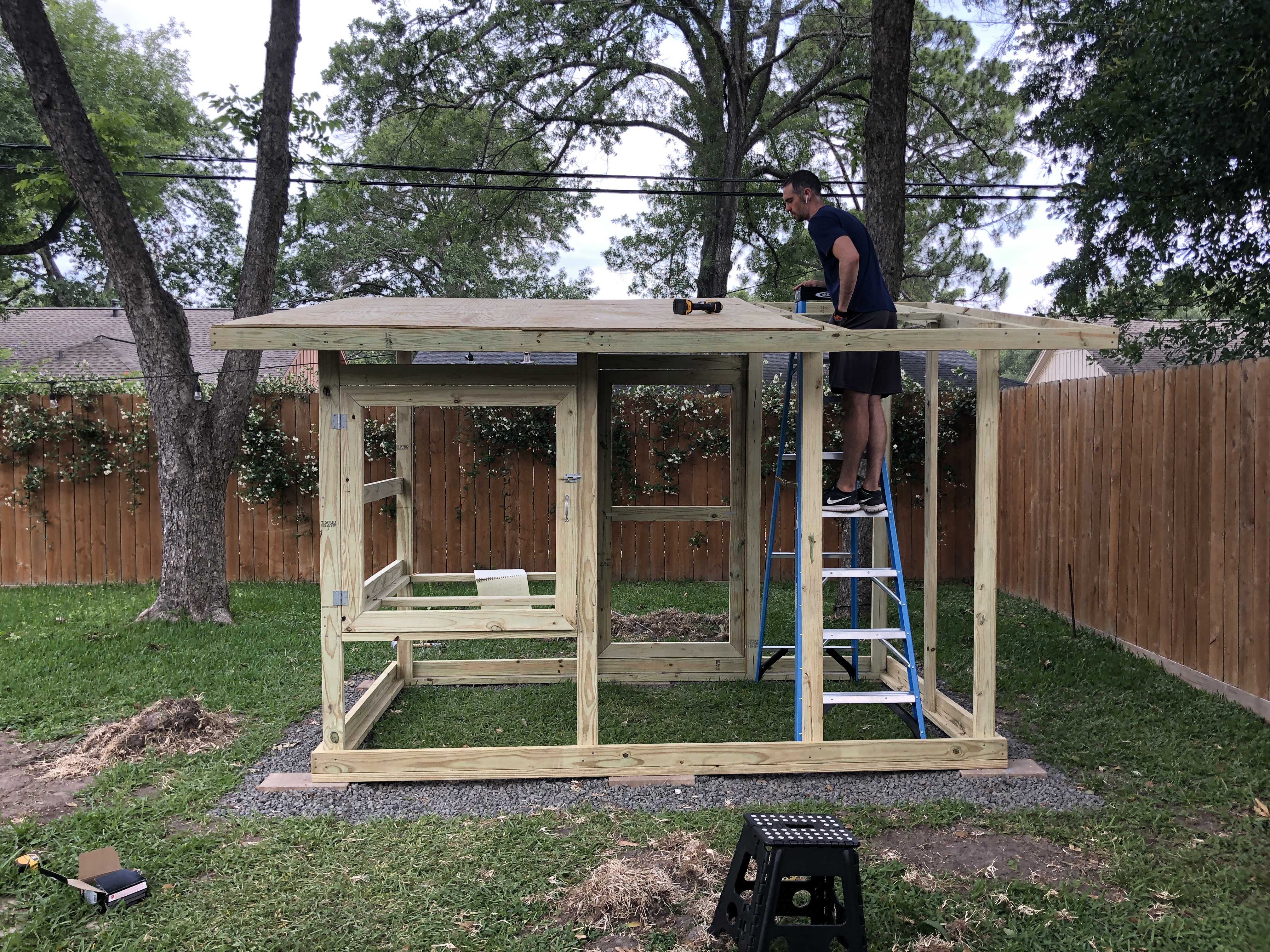 After raised beds, Paul built a chicken coop and they got chickens.